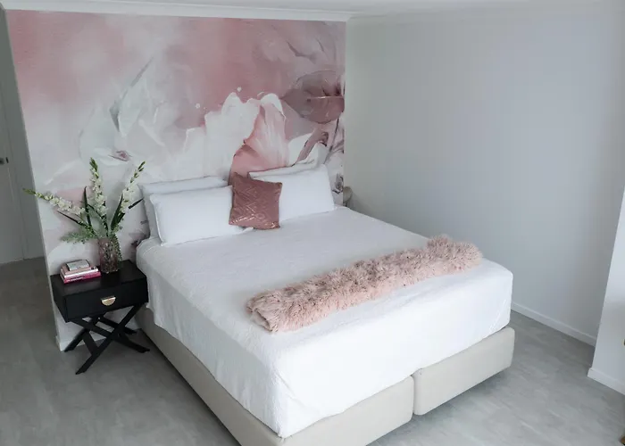 De 2-slaapkamer Serenity Cove Luxe Retreat Maroochydore villa bevindt zich op zo'n dan 10 minuten rijden van Aqua Fun Park en beschikt over een terras met uitzicht op de tuin.
